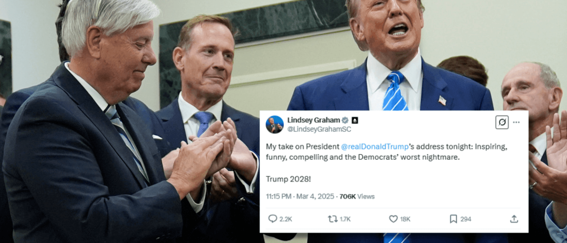 In an interview on Fox News, Senator Lindsey Graham (R-SC) voiced support for President Trump’s potential return to the White House in 2028. “Trump 2028. I hope this never ends,” Graham stated, emphasizing his backing for the former president’s leadership. He highlighted Trump’s recent remarks on international affairs, saying, “When he asks what should you do if a Russian jet flies into your country, shoot it down.”