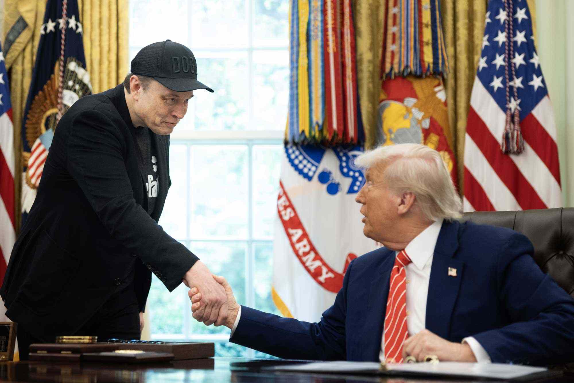 President Donald Trump and Elon Musk were seen seated together, engaged in a seemingly cordial conversation at a recent event. The pair, known for their occasional public disagreements, were observed shaking hands and exchanging words in what appeared to be an effort to mend relations. Observers noted the unexpected nature of their interaction, which has sparked speculation about potential collaborations or shifts in political dynamics. The moment was captured by attendees, highlighting the growing interest in high-profile figures navigating complex personal and professional relationships.